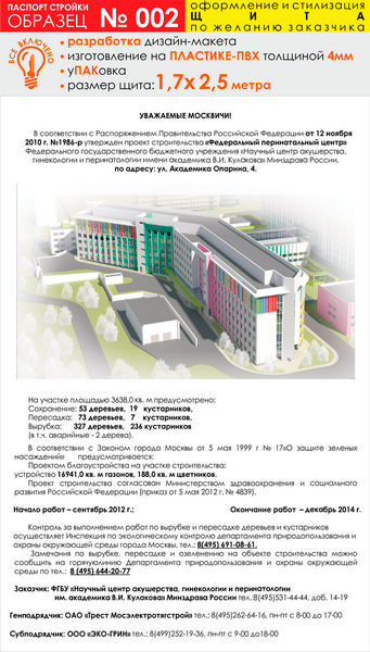 Паспорт стройки, образец № 2 (пластик 4 мм, 1700х2500 см) в Омске купить
