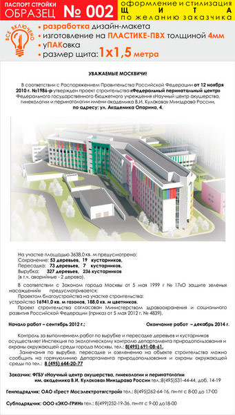 Паспорт стройки, образец № 2 (пластик 4 мм, 1000х1500 cм) в Омске купить