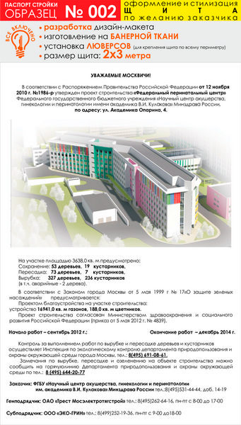 Паспорт стройки, образец № 2 (баннерная ткань, 2000х3000 cм) в Омске купить