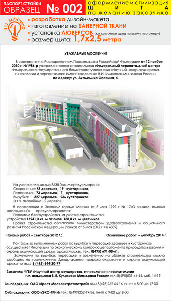 Паспорт стройки, образец № 2 (баннерная ткань, 1700х2500 см) в Омске купить