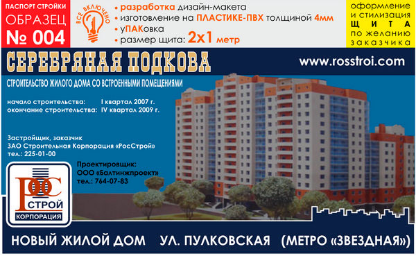 Паспорт стройки, образец № 4 (пластик 4 мм, 2000х1000 cм) в Омске купить