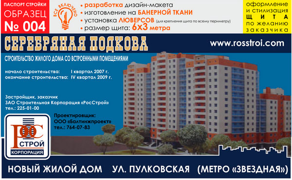 Паспорт стройки, образец № 4 (баннерная ткань, 6000х3000 cм) в Омске купить