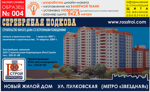 Паспорт стройки, образец № 4 (баннерная ткань, 5000х2500 cм) в Омске купить
