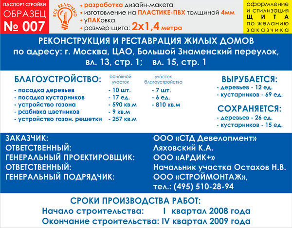 Паспорт стройки, образец № 7 (пластик 4 мм, 2000х1400 cм) в Омске купить