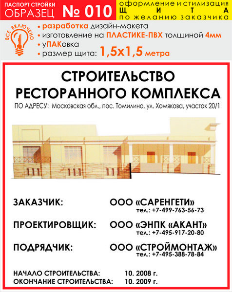 Паспорт стройки, образец № 10 (пластик 4 мм, 1500х1500 cм) в Омске купить