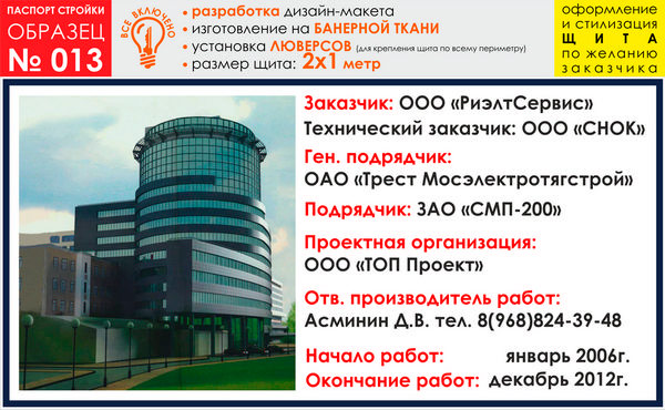 Паспорт стройки, образец № 13 (баннерная ткань, 2000х1000 cм) в Омске купить