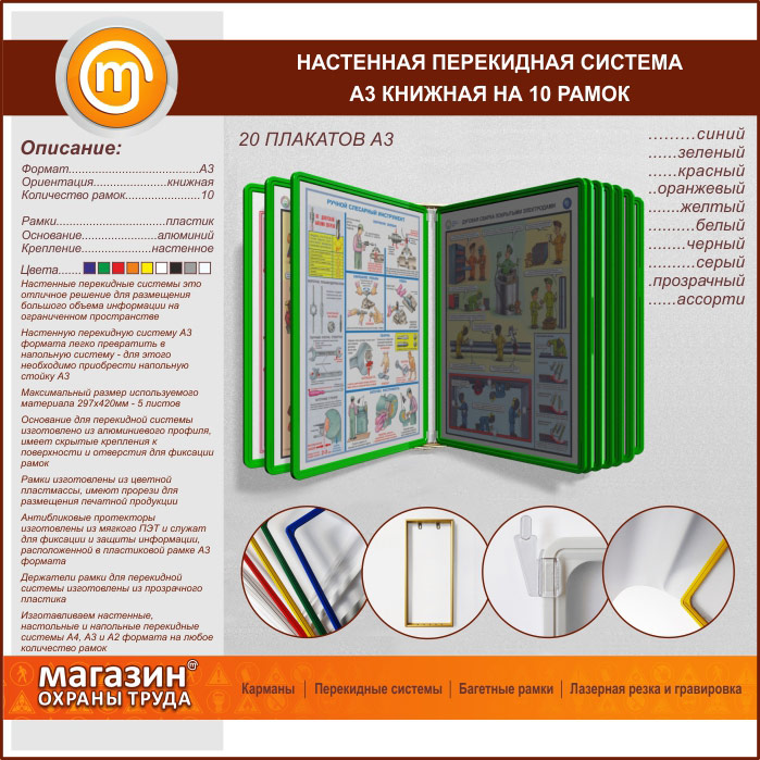 Настенная перекидная система А3 на 10 рамок книжная в Омске купить