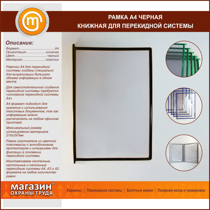 Рамка А4 черная книжная в Омске купить