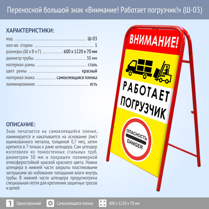 Переносной знак «Внимание! Работает погрузчик!» (Ш-03)
