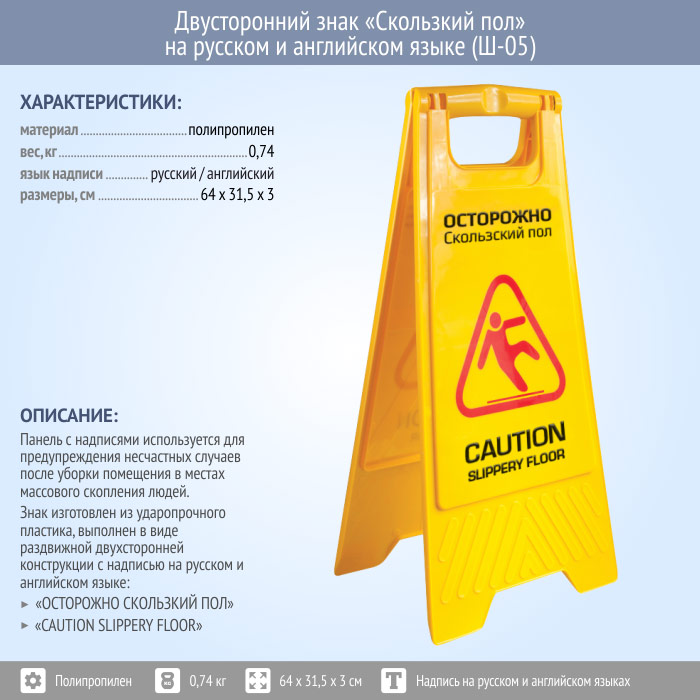 Знак «Скользкий пол» на русском и английском языке (Ш-05) в Омске купить