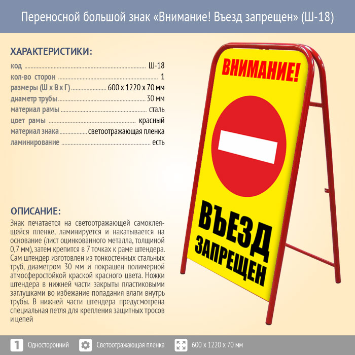 Переносной большой знак «Внимание! Въезд запрещен» (Ш-18, односторонний, светоотражающая пленка) в Омске купить