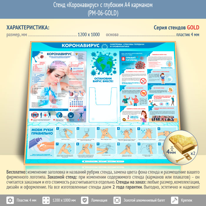 Стенд «Коронавирус» с глубоким А4 карманом (PM-06-GOLD) в Омске купить