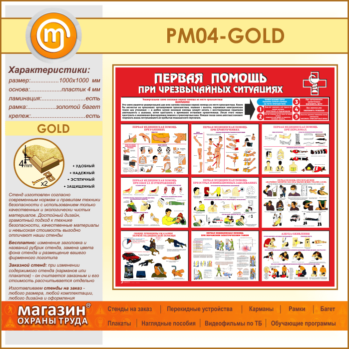 Стенд «Первая помощь при чрезвычайных ситуациях» (PM-04-GOLD) в Омске купить