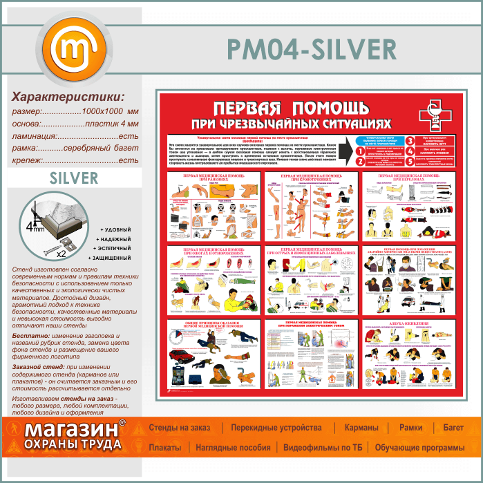 Стенд «Первая помощь при чрезвычайных ситуациях» (PM-04-SILVER) в Омске купить