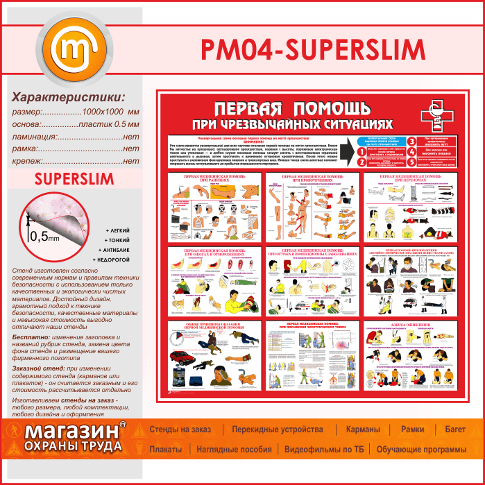 Стенд «Первая помощь при чрезвычайных ситуациях» (PM-04-SUPERSLIM) в Омске купить