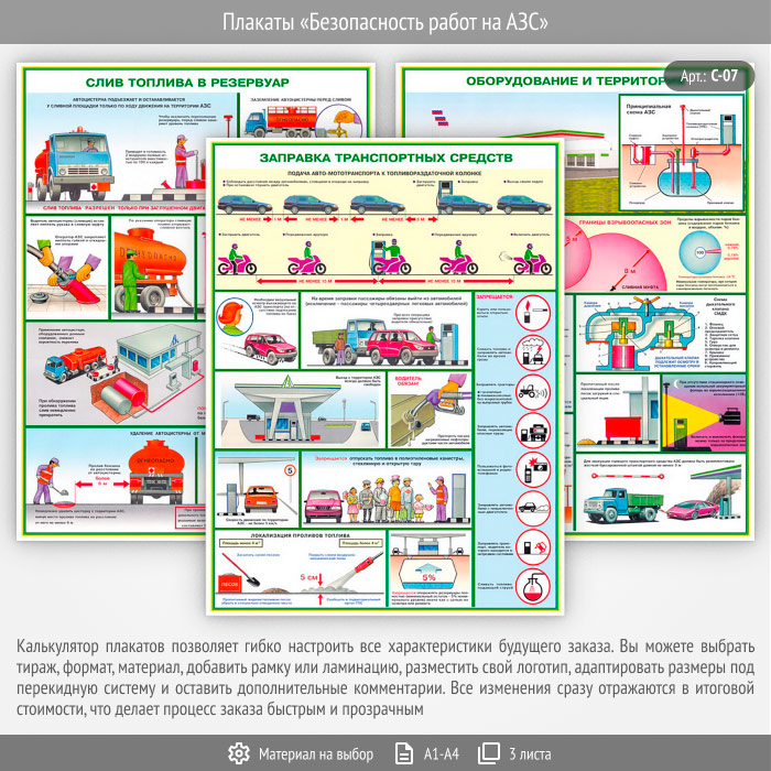 Комплект плакатов «Безопасность работ на АЗС» из 3 листов – достойное качество и полезная информация по приемлемой цене