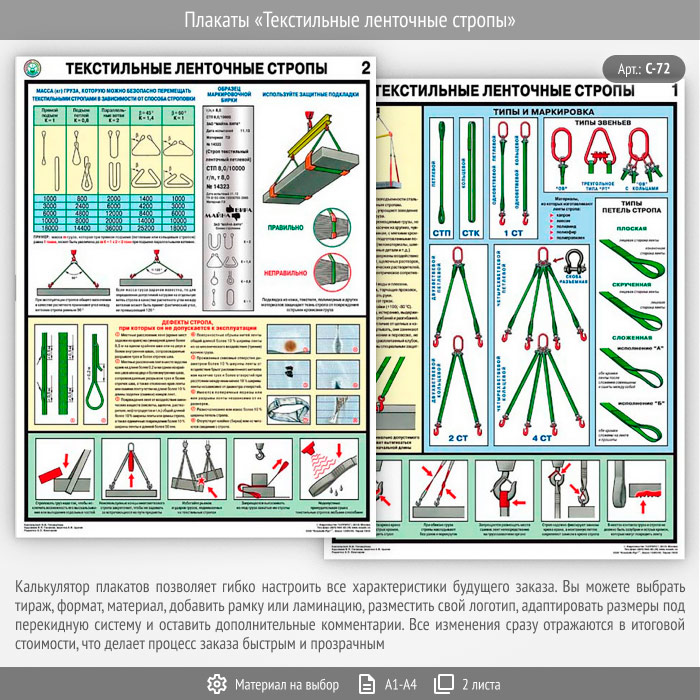 Плакаты «Текстильные ленточные стропы» (С-72, 2 листа)