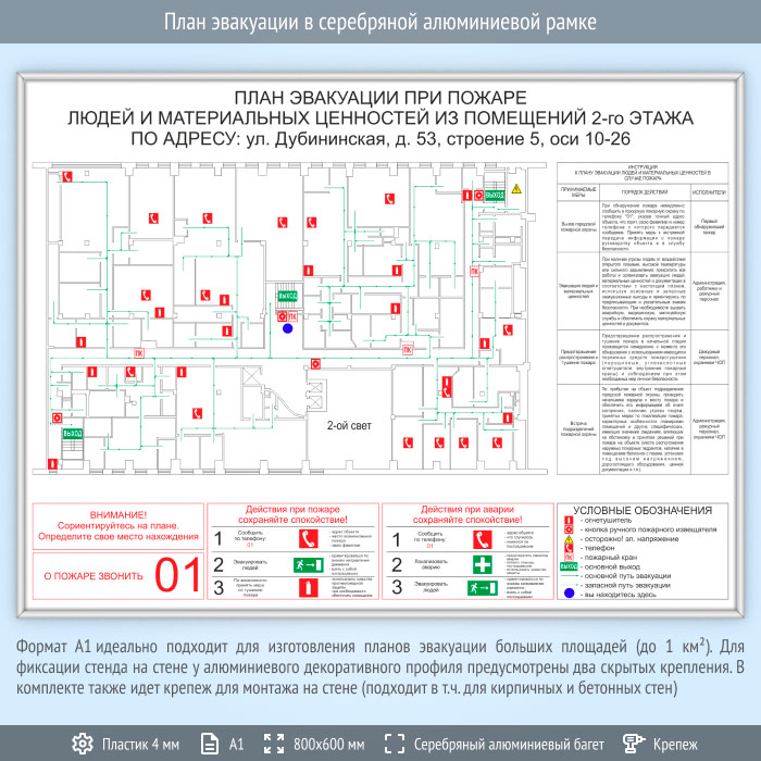 План эвакуации в серебряной алюминиевой рамке (А1 формат) в Омске купить