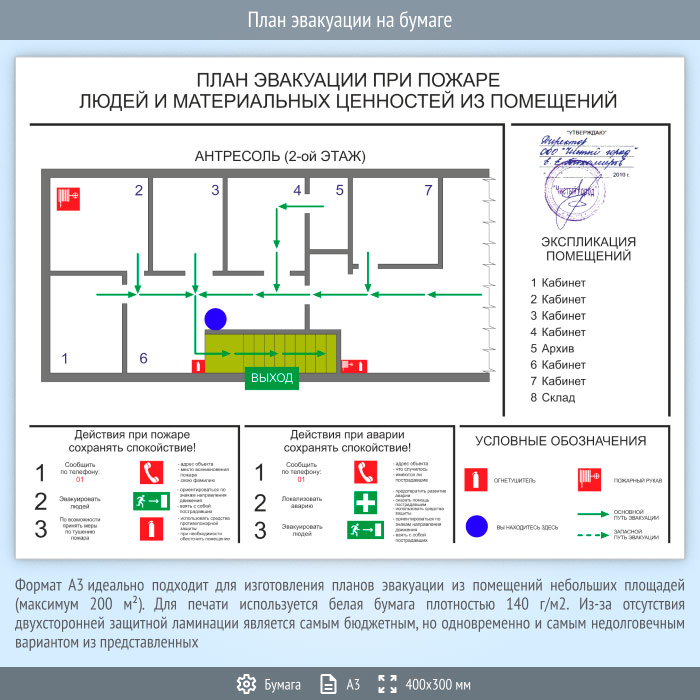 План эвакуации на бумаге (А3 формат) в Омске купить