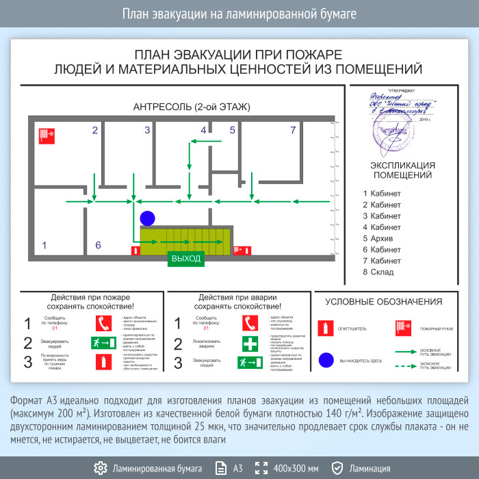План эвакуации на ламинированной бумаге (А3 формат) в Омске купить