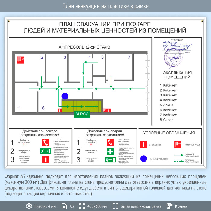 План эвакуации на пластике в рамке (А3 формат) в Омске купить