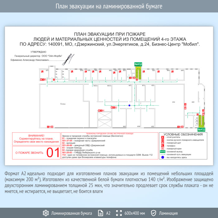 План эвакуации на ламинированной бумаге (А2 формат) в Омске купить