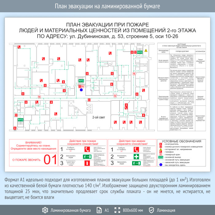 План эвакуации на ламинированной бумаге (А1 формат) в Омске купить