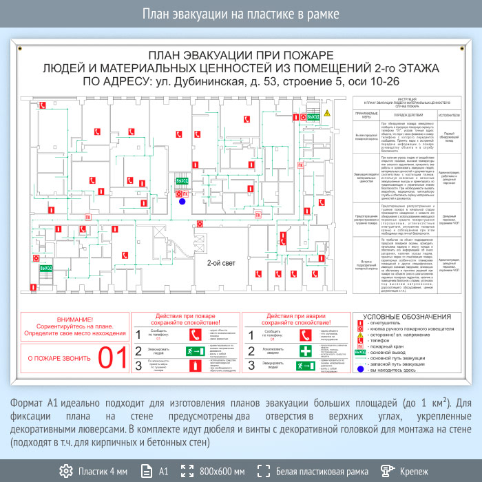 План эвакуации на пластике в рамке (А1 формат) в Омске купить