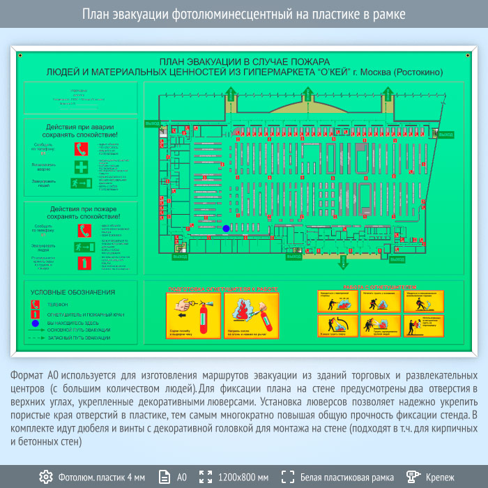 План эвакуации фотолюминесцентный на пластике в рамке (А0 формат) в Омске купить