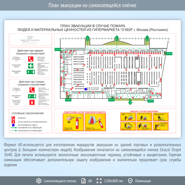 План эвакуации на самоклеящейся плёнке (А0 формат) в Омске купить