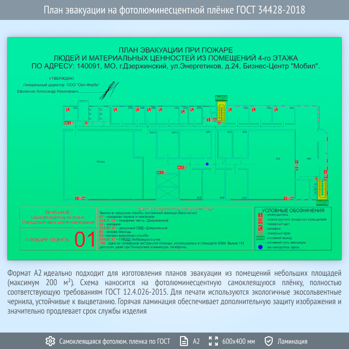 План эвакуации на фотолюминесцентной плёнке ГОСТ 34428-2018 (А2 формат) в Омске купить
