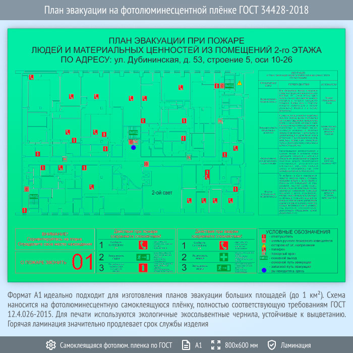 План эвакуации на фотолюминесцентной плёнке ГОСТ 34428-2018 (А1 формат) в Омске купить