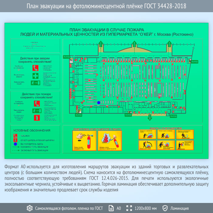 План эвакуации на фотолюминесцентной плёнке ГОСТ 34428-2018 (А0 формат) в Омске купить