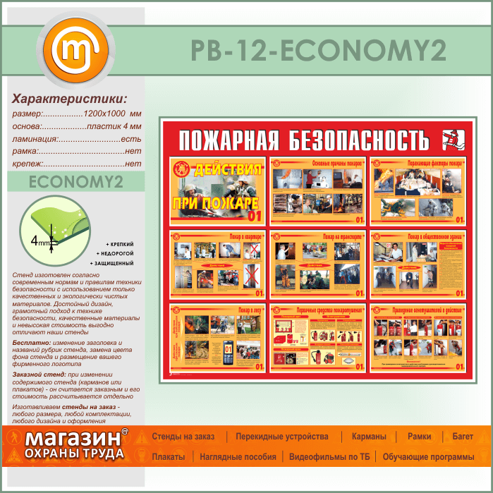 Стенд «Пожарная безопасность. Действия при пожаре» (PB-12-ECONOMY2) в Омске купить