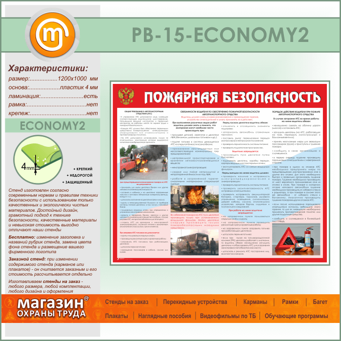 Стенд «Пожарная безопасность на автотранспорте» (PB-15-ECONOMY2) в Омске купить