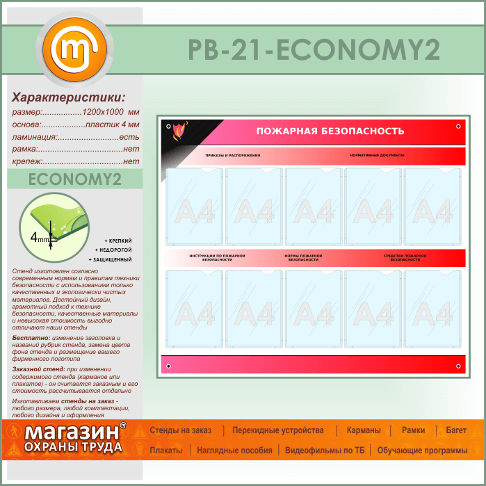 Стенд «Пожарная безопасность» с 10 карманами (PB-21-ECONOMY2) в Омске купить