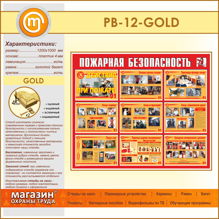 Стенд «Пожарная безопасность. Действия при пожаре» (PB-12-GOLD) в Омске купить
