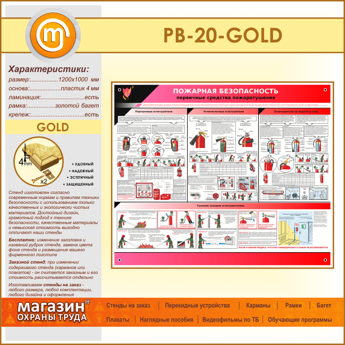 Стенд «Пожарная безопасность. Первичные средства пожаротушения» (PB-20-GOLD) в Омске купить