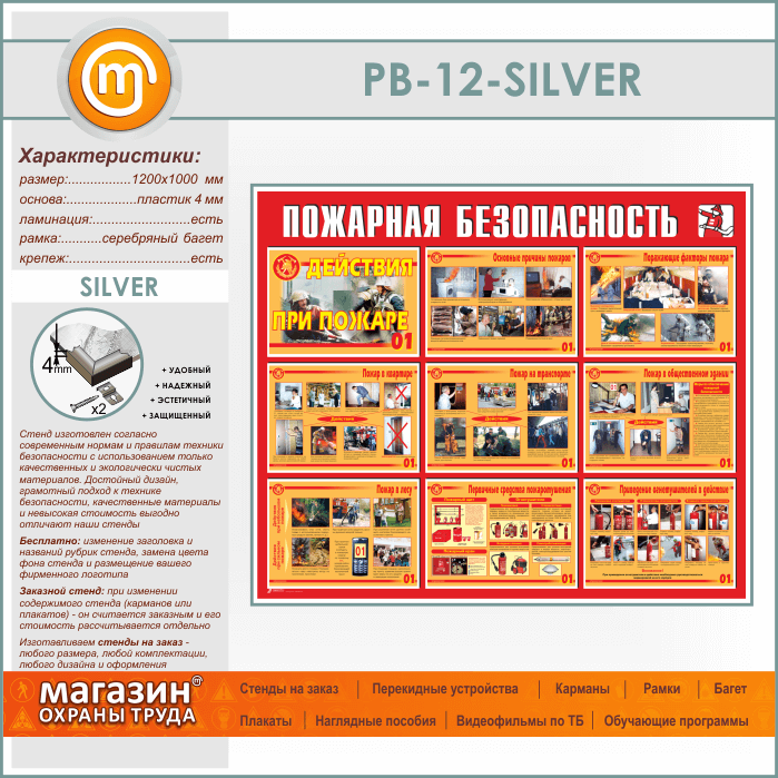 Стенд «Пожарная безопасность. Действия при пожаре» (PB-12-SILVER) в Омске купить