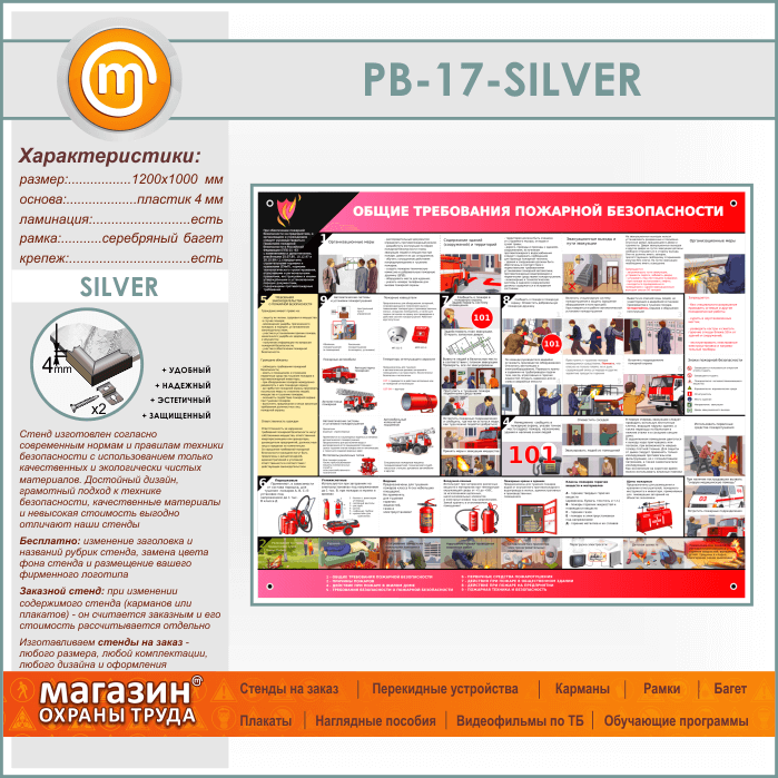 Стенд «Общие требования пожарной безопасности» (PB-17-SILVER) в Омске купить