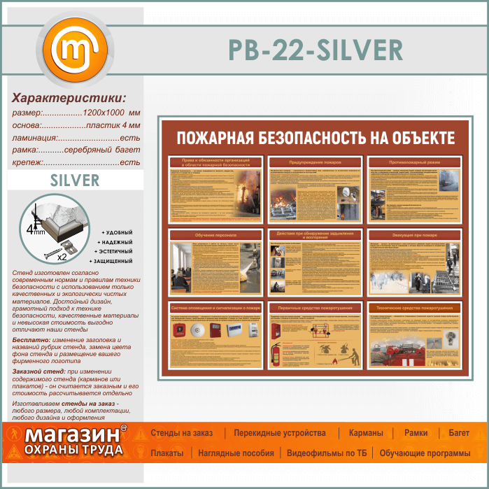 Стенд «Пожарная безопасность на объекте» (PB-22-SILVER) в Омске купить
