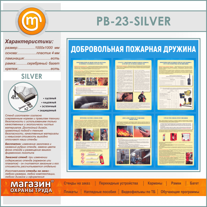 Стенд «Добровольная пожарная дружина» (PB-23-SILVER) в Омске купить