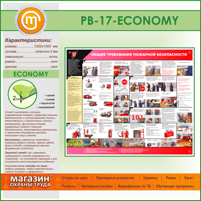 Стенд «Общие требования пожарной безопасности» (PB-17-ECONOMY) в Омске купить