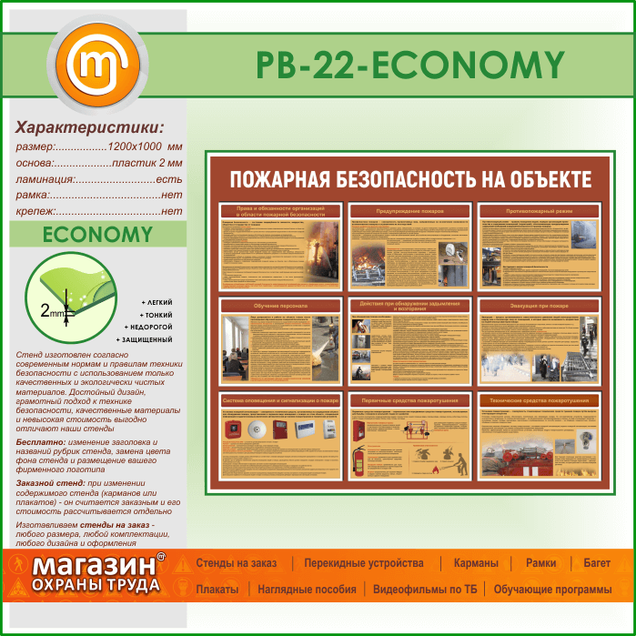 Стенд «Пожарная безопасность на объекте» (PB-22-ECONOMY) в Омске купить