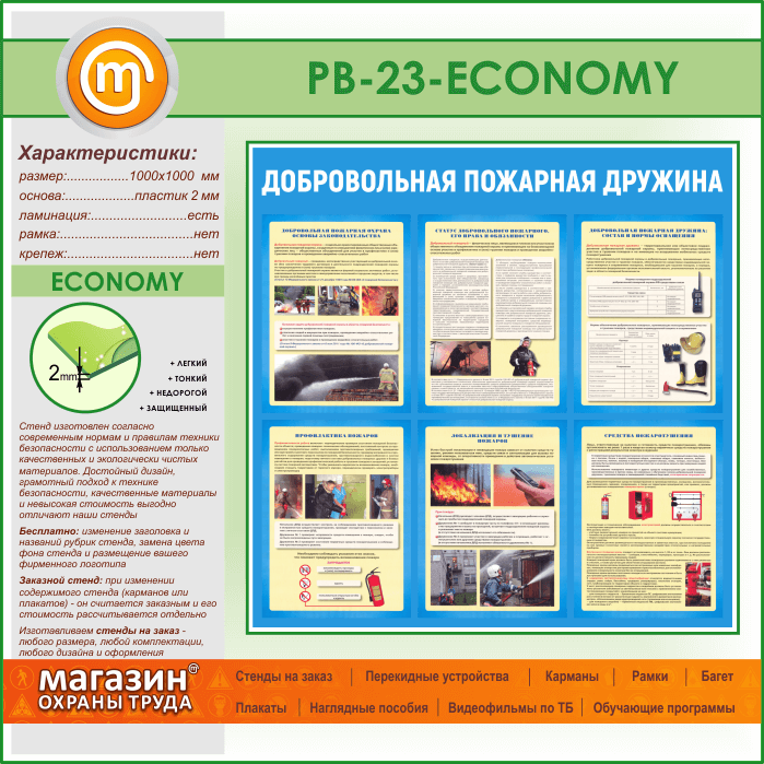 Стенд «Добровольная пожарная дружина» (PB-23-ECONOMY) в Омске купить