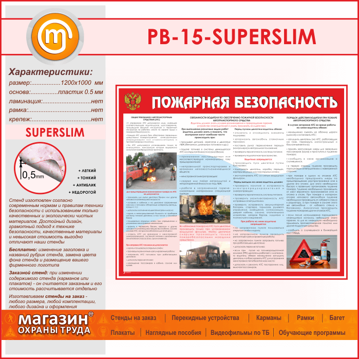 Стенд «Пожарная безопасность на автотранспорте» (PB-15-SUPERSLIM) в Омске купить