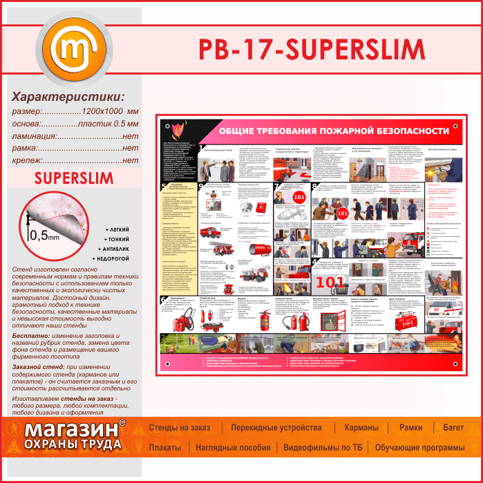 Стенд «Общие требования пожарной безопасности» (PB-17-SUPERSLIM) в Омске купить