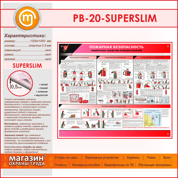 Стенд «Пожарная безопасность. Первичные средства пожаротушения» (PB-20-SUPERSLIM) в Омске купить