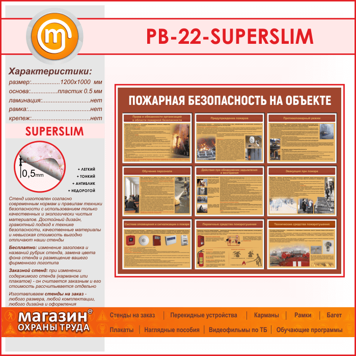 Стенд «Пожарная безопасность на объекте» (PB-22-SUPERSLIM) в Омске купить