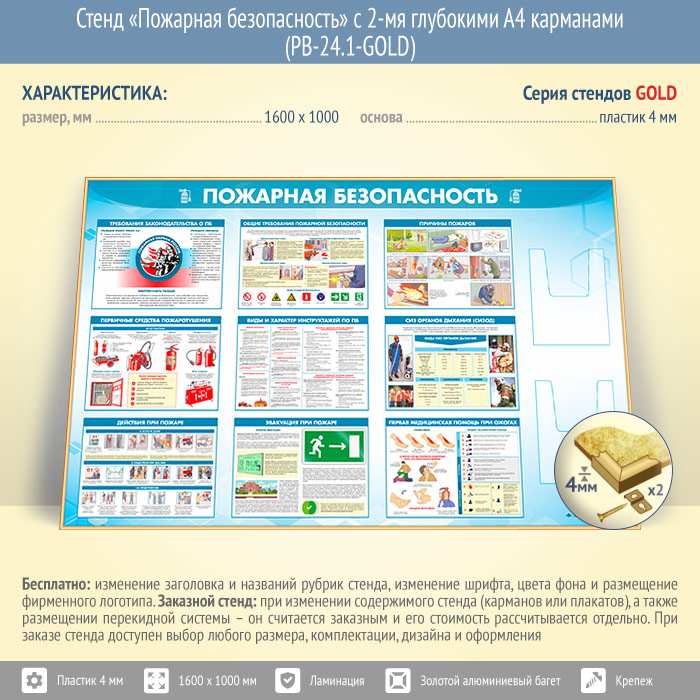 Стенд «Пожарная безопасность» с 2-мя глубокими А4 карманами (PB-24.1-GOLD) в Омске купить